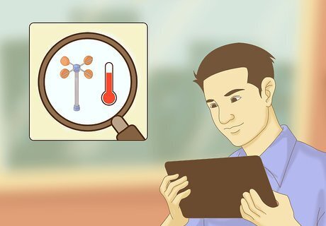 Look up the temperature and wind speed. Both of these pieces of information are typically available from weather forecasts on websites, television and radio stations, and newspapers.