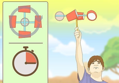 Count the number of rotations the anemometer makes. Hold the anemometer upright in a windy area. Watch a single cup (draw on it with a marker if it makes it easier to follow) and count the number of times it rotates. Use a stopwatch or a friend watching the second hand of a clock to time 15 seconds, and stop you when the time is up. Multiply your count by four to get the number of revolutions per minute (rpm). For greater accuracy, count the number of rotations in 60 seconds (and don't multiply by anything).