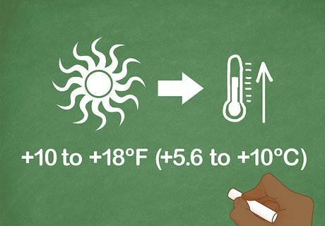 Adjust for sunshine. Bright sunshine can raise the apparent temperature by as much as +10 to +18ºF (+5.6 to +10ºC). There's no official formula to measure this effect, but be aware that sunlight will make the air seem warmer than the wind chill formula suggests.