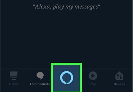 Say "Alexa". Say the wake command to wake Alexa and she will begin listening for your next command. The default wake command is "Alexa," but if you've changed it to "Echo," "Amazon," or some other command, then use the wake command you previously set.