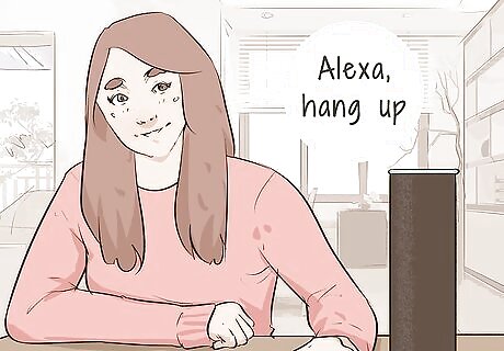 Ask Alexa to hang up the call. To end a call, simply say, "Alexa, hang up," or "Alexa, disconnect." You can also hang up from the Alexa app by pressing the red phone icon.