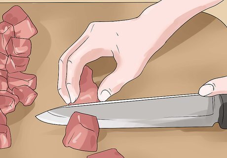 Cut the meat into cubes or strips. Rather than canning an entire wedge of meat, it's a good idea to cut it into cubes or strips, so each individual piece gets hot enough during the canning process. As you cut the meat, remove any pieces of bone or gristle. If you're canning ground meat, you can skip the cubing step. Form the meat into patties or can it loose. It's easier to cut the meat while it's cold, rather than cutting warm meat.