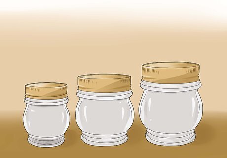 Use canning jars and lids. Canning jars are made of glass and come in convenient sizes. You can buy new jars or reuse old ones, but make sure the lids are new. Reusing old lids isn't safe, since they won't properly seal the second time around. Jars come in quarts, pints and half pints. Choose the size that fits the needs of your family. It makes sense to can a meal's worth of meat in one jar.