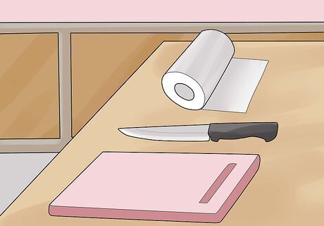 Set up your workspace. Before you start canning, take the time to set up your work area in the kitchen. Be sure the surfaces you'll be using are clean. Lay out your cutting board and knife, paper towels and some vinegar for wiping the rims of the jars. Place your jars within reach of the cutting board so you'll be able to transfer the meat to them right away. Keep the lids and rings away from the meat area to prevent them from getting bits of fat or grease on them.