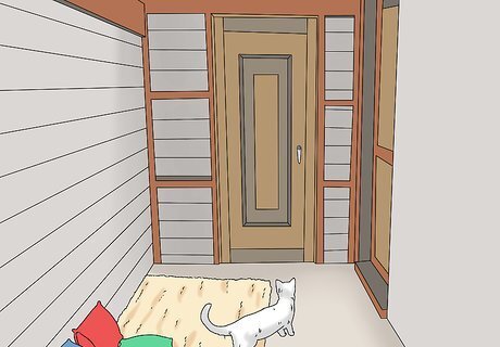 Add carpeting and cushions to your home. Cats with CH are prone to falling because of their disability, so it is best to have carpeted surfaces in your home. It is also wise to install carpeting and cushions under elevated spots, so that your cat has a soft landing area. If you currently have slippery hardwood or other flooring, consider getting some carpets to make life easier for your cat. Carpets are especially important for cats with moderate or severe CH. If your cat has only mild CH, carpeting is preferred but not absolutely necessary.