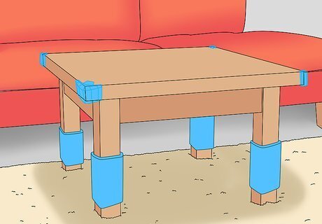 Add bumpers to sharp furniture and corners. Since cats with CH often have a hard time navigating turns, you may want to add bumpers to soften the blow if they run into a piece of furniture. You can get foam bumpers from home hardware and furniture stores. If you have a low coffee table with sharp edges, you could put bumpers on the corners. Bumpers are especially important for cats with moderate or severe CH. Depending on the severity of the CH, you may want to install baby gates. For instance, you could place baby gates in front of stairways and garage doors.
