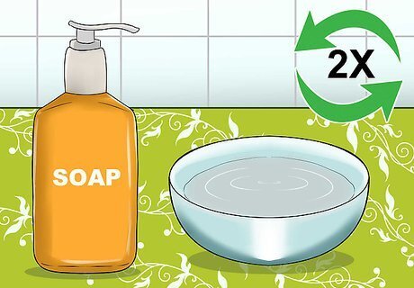 Wash your piercing with soap and water twice a day. You do not need anything other than soap and water to clean your piercing. Use an oil-based soap and warm water to gently swab the piercing with cotton balls. If your piercer recommended a special cleaner, use that. Do not use rubbing alcohol or alcohol-based cleaners. These can dry out the piercing.