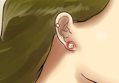 Keep your piercing in place. You may be inclined to take your piercing out if you notice an infection. This may also cause the hole to close. The piercing should remain in place for the entire healing process. If you notice an infection, do not panic and remove the piercing. Instead, remain calm and treat the infection.