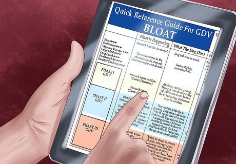 Be on the lookout for symptoms of bloat. Bloat occurs when a dog’s stomach twists, affecting blood flow and harming body systems. Irish Setters are at a higher risk than other breeds, so it’s important to be familiar with your dog’s regular behavior in order to recognize symptoms. The first signs of bloat are restlessness, anxious pacing, dry heaving or unsuccessful attempts to vomit, and stomach swelling. Give your vet a call, and take your dog for an exam immediately. Since Irish Setters are prone to developing bloat, consider keeping a fact sheet with symptoms, action steps, and your vet’s emergency contact number handy. Feeding your dog two to three smaller meals instead of one large meal can help prevent bloat. Talk to your veterinarian about preventative surgery. Your vet may recommend gastropexy to reduce or eliminate the risk that your dog’s stomach will twist on itself in the future.