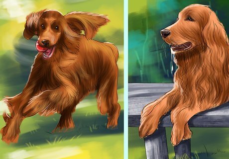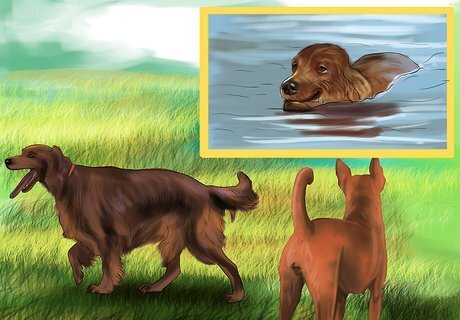 Be aware of overexertion. Irish Setters, especially younger dogs, will often let out a big, quick burst of energy when playing, then suddenly get tired. When you’re playing or out and about, try not to push your dog if it needs to rest for a minute. Irish Setter puppies in particular will let out lots of energy then get tired. In addition, their joints are still forming, so take special care not to overexert your Irish Setter puppy by jogging or running for long periods of time. Since they mature slowly, be aware that Irish Setters still act like puppies or juveniles and quickly wear themselves out even past two or three years old. Fenced dog parks or yards are great options, since they let your dog play and rest as it feels the need.