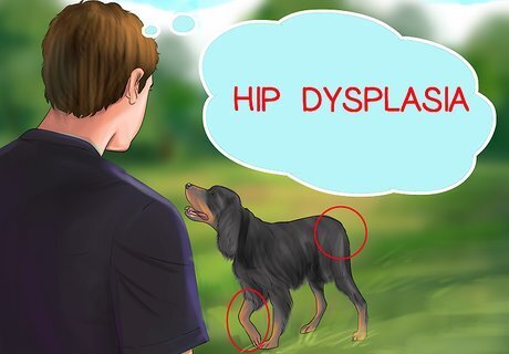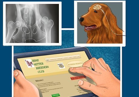 Keep an eye out for signs of hip problems. Irish Setters are prone to developing a condition called hip dysplasia. It’s typically inherited, so knowing if either of your dog’s parents had it will help you maintain your dog’s health. Whether or not its parents had hip dysplasia, be on the lookout for symptoms such as limping, hesitation when jumping, and loss of thigh muscle mass. You can prevent or manage hip dysplasia by keeping an eye on your dog’s weight, avoiding overfeeding, and giving it regular exercise. Be aware that hip dysplasia can occur at any time during a dog’s lifespan, including when it’s a puppy.