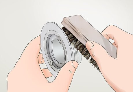 Scrape away old caulk and any buildup from the drain body and drainpipe. Use a putty knife, flathead screwdriver, or some other kind of scraper to remove all the old caulk and any gunk that is in the parts of the drain. This will ensure that you get a tight seal when you put them back into place. Tip: You can use steel wool to remove any last traces of putty and gunk, as well as polish the face of the drain body, after you scrape the big stuff off. Be careful not to gouge the threads or the face of the drain body and drainpipe as you scrape them clean.