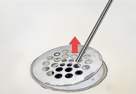 Lift off the drain cover by prying it up with the tip of the screwdriver. Insert the tip of your screwdriver into a hole of the grid. Gently pry it up by using the screwdriver as a lever until you can grab the cover with your hands and remove it. You might be able to just lift the faceplate off with your hands, but using a screwdriver to pry it up will help in case it is stuck around the edges.