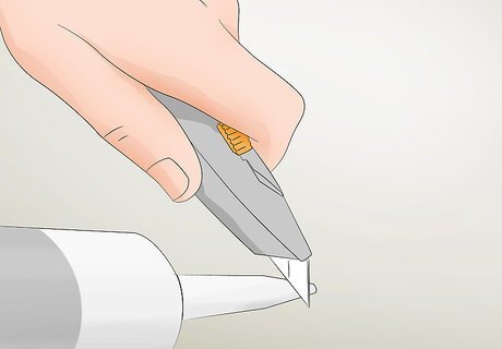 Cut the tip off a tube of caulk with a utility knife. Carefully slice the tip off to make a hole that you can squeeze the caulk out of. Make sure to use silicone bathroom/kitchen/plumbing caulk for your drain to ensure it is waterproof. Warning: Do not use latex caulk because it can become brittle, which will cause the seal to break. It is also prone to problems with mildew and mold. You can get a tube of silicone plumbing caulk at any home improvement store.