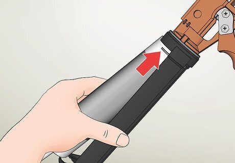 Insert the tip of the caulk tube into a caulk gun and snap it in place. Put the tip of the caulk tube in the end of the caulk gun furthest from the handle. The rest of the tube will snap easily into place, as long as the tube and the gun are the same size. You can get a caulk gun that fits your caulk tube at a home improvement store.