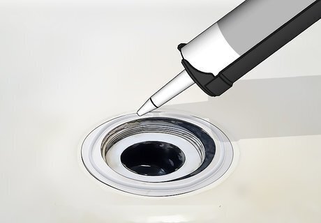 Squeeze a bead of caulk around the drain opening. Hold the tip of the caulk gun at a 45-degree angle to the rim of the drain hole. Squeeze the trigger and slowly move the tip of the caulk gun around the opening until there is an even line of caulk all the way around. If the caulk stops coming out at any point, then release the trigger and press it again until the caulk starts coming out again.