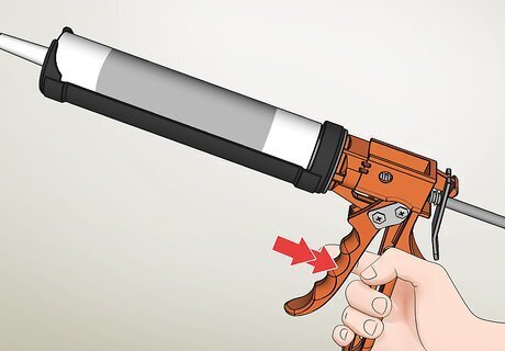 Pull the trigger a few times to prime the tube. Hold the caulk gun at a 45-degree angle over a scrap piece of paper. Pull the trigger until caulk comes out in a steady stream. This will ensure that you can get an even bead of caulk out around the drain.