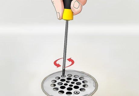Unscrew each of the screws to loosen the drain cover. There are normally 2 screws; 1 on each side of the grid. Unscrew them by inserting a screwdriver and twisting counterclockwise until you can pull them out. Set the screws aside in a safe place. Use a Phillips head screwdriver if the screws have a star-shaped slot, or a flathead screwdriver if they have a linear slot.
