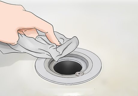 Wipe away the excess caulk with a paper towel. Thoroughly wipe away the caulk that oozes out around the drain after you have tightened it. Throw away the dirty paper towel. Try moistening the paper towel to wipe away the caulk if it is hard to get all of it off with a dry paper towel.