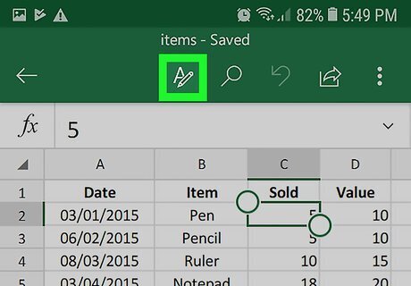 Tap the A icon at the top. This is your toolbar button on a navigation bar at the top of your screen. It looks like an "A" with a pencil on it. Tapping will open your toolbar options at the bottom.