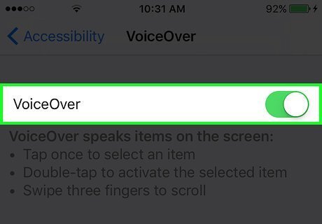 Slide the VoiceOver switch to the on position. If it’s already on, you can skip this step.
