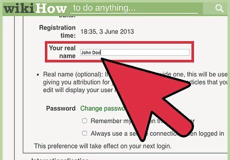 Enter your desired name into the "Real Name" field. This doesn't have to be your actual real name, it can be any name you want, though it's a good idea to continue abiding by the Username Policy. If this field is left blank, your username will be used to attribute your work.