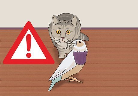 Keep finches away from cats. If you own a cat and are thinking about getting finches, you should think about how you will ensure the safety of your finches. Cats will typically hunt birds. The best way to prevent a fatal interaction is to keep the finches away from your cats. Although finches spend most of the time in their cage, you may want to avoid choosing a finch if you own cats. You can still care for a finch in your house even though you own a cat or a dog. You'll just have to make sure the cat or dog cannot access the finches at any time.