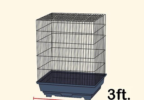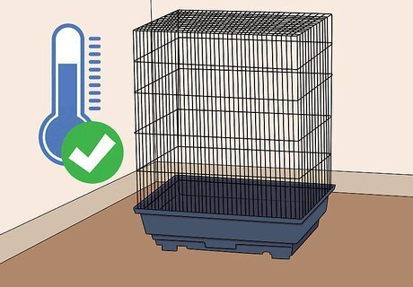 Locate the bird cage in a quiet room with a stable temperature. You’ll want to place the bird cage in a room with a consistent temperature and without any drafts. You should pick a quiet room, since finches need adequate rest in order to stay healthy. Avoid situating the cage near the kitchen, as fumes from nonstick pans are toxic to birds. Don’t put the cage in a room that has a television on all the time, since the finches won’t be able to sleep. Keep the cage away from open doors and windows.