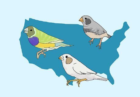 Select the perfect variety of finches for your taste. Pick a pair of the same type of finch, such as a pair of zebra finches. There are many beautiful varieties to choose from, such as the Gouldian finch with the bright red, purple, and green coat. If you want more than one variety, you should get a pair of each. Some breeds can be more aggressive than other breeds. Some breeds cannot be housed inside aviaries for various reasons. The most common breed is the Zebra Finch, but there are other breeds that make good pets, such as the Spice Finch, Strawberry Finch, Society Finch, and the Gouldian Finch.