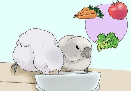Feed your finches a wholesome diet. You should feed them mostly pellet foods and some seeds. In addition, give them spray millet. Make sure they always have access to fresh water. To round out their diet, give them the following foods: Egg food. Carrot, lettuce, dandelion, apples, and oranges.