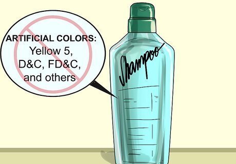 Avoid shampoos with artificial colors. Many dog shampoos that claim to be “herbal” contain artificial colors. Artificial colors can be very harmful. Artificial colors are associated with many forms of cancer, and should be avoided. Examples of artificial colors are Yellow 5, D&C, FD&C, and others.