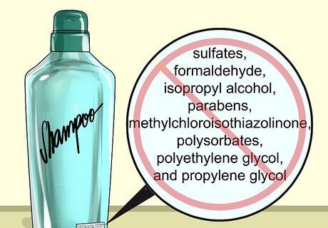 Stay away from shampoos with harmful chemicals. Try to avoid shampoos that contain ingredients such as sulfates, formaldehyde, isopropyl alcohol, parabens, methylchloroisothiazolinone, polysorbates, polyethylene glycol, and propylene glycol. Many of these ingredients are by products that can irritate and disrupt the pH balance of the skin and fur, or cause serious illnesses and diseases in dogs.