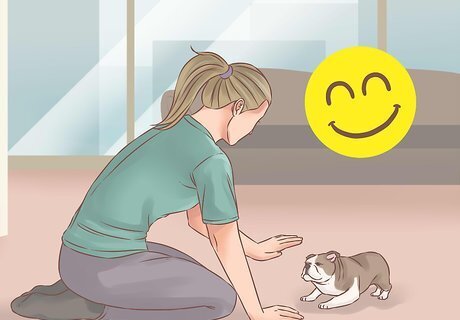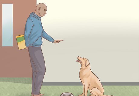 Emphasize obedience training. Setting limits and introducing your puppy to basic commands is the best way to prepare your dog to begin a more comprehensive training program. Teaching a puppy to sit and stay, however, may be harder than you anticipate. To teach your dog to sit, say “sit” while you guide them into a sitting position by placing one hand on their chest and another behind their back legs. Once they are sitting, reward them with a treat. This is an example of positive reinforcement, which can be applied to many different obedience commands. Stay patient and consistent. The importance of teaching these commands is coupled with the importance of teaching your puppy to listen. Once these commands are consistently followed, your dog is not only able to begin further training, but the process will become much easier.