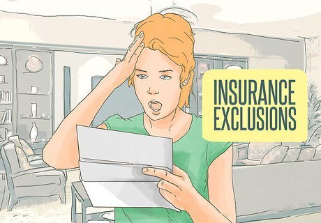 Look into exclusions and riders. Next, consider what is and isn't included in the various companies' policies. Make sure that any possibilities important to you aren't excluded. For example, if you have a pool, be certain drownings aren't excluded. Likewise, check to see if they allow riders for anything you might want to add on to the standard policy. For example, some companies allow riders for coverage of home businesses.