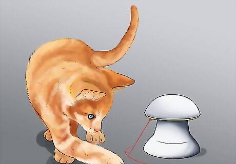 Buy toys your cat can chase. Cats enjoy toys they can chase, as this reminds them of hunting for prey in the wild. Fishing pole toys, if used with supervision, are a great and safe toy that will keep your cat engaged. Laser pointers are also fun for cats, as they can chase the light across your home. Plush toys can be altered to use for chasing. You can, for example, tie a string around a plush mouse and drag it along the floor for your cat to chase. Just make sure not to leave your cat alone with a string.