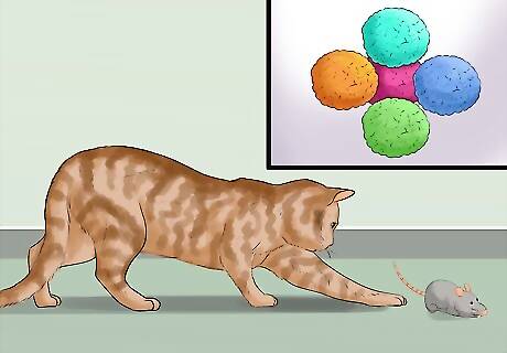 Provide catnip. Catnip is safe for most cats to use. It is not addictive and will not cause health problems. Invest in toys that are laced with catnip or toys that you can store catnip in. Your cat will be enticed by a catnip toy. Keep in mind not all cats react to catnip, so your cat may not be interested in catnip. If you have more than one cat, they may fight over catnip. Do not leave cats who fight over catnip alone with it.