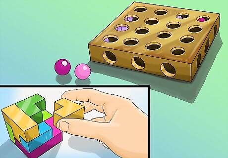 Watch out for sharp edges. If you're buying something like a puzzle toy or plastic toy, run your fingers along the edges first. Make sure you do not notice any sharp parts that prick or hurt your fingers. Cats will handle toys heavily via chewing, batting, and kicking. If a toy has a sharp edge, your cat could cut its mouth or skin while playing. Ball toys are a good option as they're unlikely to have sharp edges. Soft catnip mice are also a good option over rigid toys.