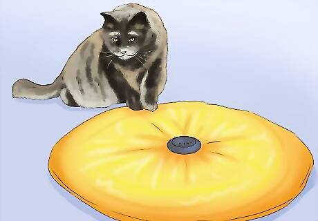 Get your cat toys they can use alone. As you may leave your cat alone for long hours during the day, make sure they have toys they can use without you. Things like plush mice and small balls can be safe for your cat to use while you're gone. Some stores sell puzzle toys. You put a toy or piece of food inside a contraption your cat must open. These can entertain your cat while you're gone. However, read the label to make sure the toy is safe to use while you're gone.