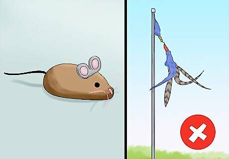 Throw away broken toys. Cat toys break with time. Broken toys may have sharp or pointed edges that can pose a safety risk. If a toy breaks, throw it away and replace it.