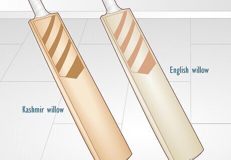 Bat material Cricket bats are typically made Kashmir willow or English willow. If you’re a beginner playing with softballs or tennis balls, use a heavier Kashmir cricket bat made from denser wood. When you’re playing with a hard ball and want the best performance, get a lighter English willow bat instead. Kashmir willow cricket bats are usually best for kids and younger players because they’re more durable.