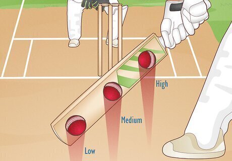Batting style Cricket bats are pretty versatile regardless of your batting style, but it can make a little difference depending on where you hit the ball. Choosing a bat based on your batting style may help you improve your game. If you hit powerful, straight shots, choose a “low” bat that has a sweet spot closer to the end of the bat. If you play off of your front foot, use a “medium” bat with a sweet spot right in the middle. If you’re batting off your back foot or hit hook shots, then choose a “high” bat where the sweet spot is closer to the handle.