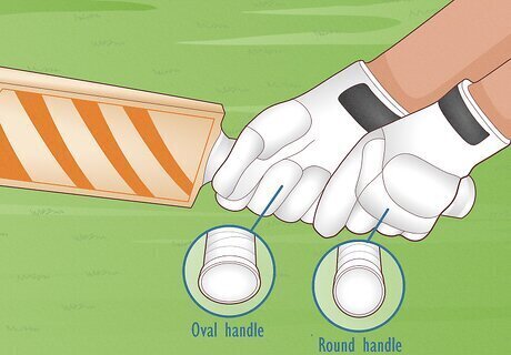 Handle shape Cricket bat handles are usually oval-shaped or round, and what you choose depends on what feels most comfortable in your grip. Oval handles can give you a lot more control of the bat with your top hand, but they’re a little tougher to grip. Round handles give you control with your bottom hand, which can help out if you’re a power hitter.
