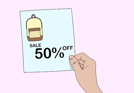 Check for sales and coupons. Check several different stores in your area to find the best deal on a backpack. Most stores offer coupons or sales advertisements on their website or app, or in newspaper inserts.