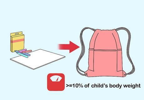 Figure out what will go in the backpack. A toddler should not be carrying more than ten percent of their body weight in a backpack. For a 30-pound (14 kg) child, that means a 3 lb (1.3 kg) load, including the actual backpack. If your child has too many things to carry in their backpack, get them a lunchbox, gym bag, or other item to carry in their hands.