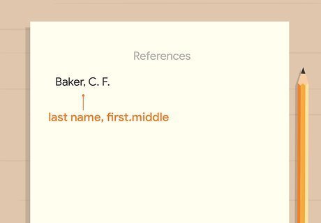Start with the name of the author. Type the last name of the author, followed by a comma, then the author's first and middle initials with periods after each initial. If no middle initial is provided, leave it out. Example: Baker, C. F.