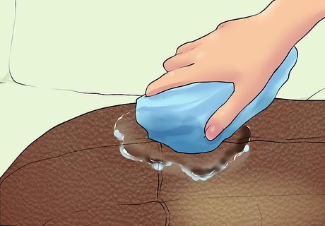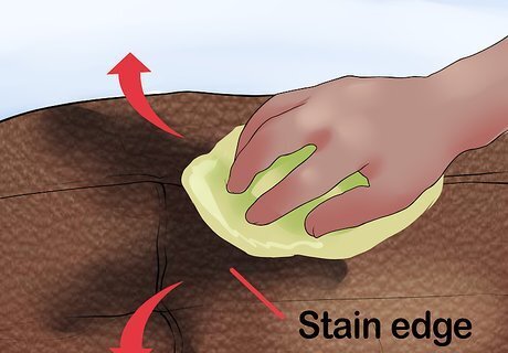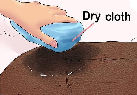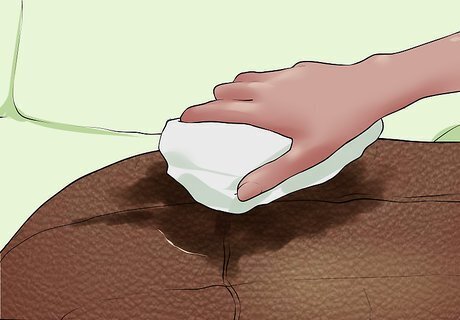 Wipe away the stain. Begin rubbing at the outer edge of the stain. Gradually work your way inward. Avoid getting the leather too wet.