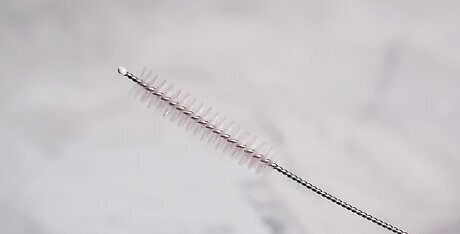 Add dish soap to your straw cleaner, then insert and scrub vigorously. Squirt a few drops of dish soap onto a pipe cleaner or cleaning brush. Use whatever dish soap you have on hand. Insert your straw cleaner and pull it back and forth a few times to clean out any hidden material in the straw. If there’s extra stubborn gunk inside that won’t come out, Stocker suggests soaking the straw in a mix of equal parts water and vinegar with a splash of lemon juice overnight. In the morning, rinse it with a hard hose in your sink to dislodge the gunk. If you are using a cleaner that isn’t long enough, insert it at both ends to clean. Or, twist 2-3 together to get the desired length. Twist them tightly so they don’t fall off inside the straw. Try a dish soap that contains natural ingredients if you are worried about ingesting soap residue. Add baking soda to your brush and rescrub the inside if you still see debris that won’t dislodge.