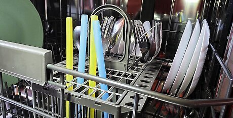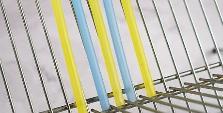 Run the straw through the dishwasher. Most straws are dishwasher safe, but it is best to check the manufacturer's instructions for the straw you are trying to clean. Once you’re confident your straw is dishwasher safe, place the straw in the bulk utensil section and run the dishwasher. When clean, make sure the straw stands upright long enough for it to dry out completely. Stainless steel straws and glass straws do well in the dishwasher. Bamboo straws, on the other hand, should just be soaked and rinsed. According to Stocker, putting straws in the dishwasher is a great way to clean reusable straws.
