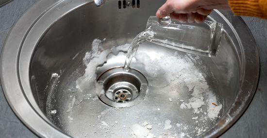 Pour vinegar on the sink's surface. The vinegar will react with the baking soda and start to foam. This foaming will help lift off the stain on the sink’s stainless steel surface. Leave the vinegar for about 10 minutes to ensure the baking soda and vinegar mixture thoroughly loosen the surface impurities. To evenly coat the sides of the sink, consider adding the vinegar to a spray bottle and spraying all around the basin. This will allow for a controlled coating of vinegar, rather than pouring vinegar down the sides of the sink. Using a soft bristled toothbrush can help clean the smaller, hard to reach areas of the sink, like the drain and grooves around the drain.