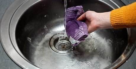 Rinse the sink. Rinse out the sink basin with water, and wipe it dry with a towel or cleaning cloth. Your sink should be shiny and clean, ready for the next use. Consider protecting your sink basin with a plastic or rubber mat. Sink mats are cheap, and can help prevent damage from sharp silverware and dishes. If you do use a mat, detach the mat from the sink at least once a week to give both the sink and mat a thorough cleaning. This will help prevent food debris and bacteria from accumulating on the mat and sink surfaces.